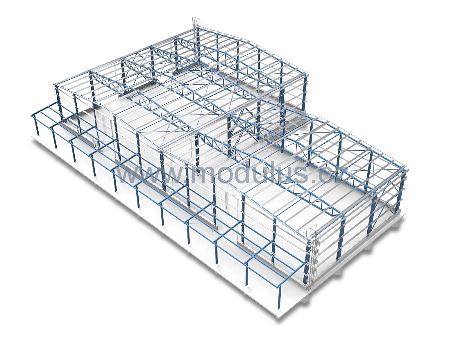 Novostavba montážní a kompletační haly financované z evropských fondů na které jsme se podíleli ve funkci generální projektanta od počáteční studie po dodavatelskou dokumentaci. Hlavní nosný systém objektu tvoří soustava příčných vazeb v modulu 7 a 6 m. Nosná ocelová konstrukce příčné vazby je navržena s vetknutými plnostěnnými sloupy a kloubově uloženým příhradovým vazníkem. Ve štítové stěně přiléhá k hale otevřený přístřešek – zastřešení nákladové rampy. Hala je navržena jako nezateplená, opláštění stěn je z vertikálně kladených sendvičových panelů, na části stěn je použit trapézový plech. Střecha je sedlová s jednovrstvým pláštěm z trapézového plechu. Odvodnění je zajištěno mezistřešním a zaatikovými žlaby s vnitřními svody. Osvětlení interiéru je zajištěno hřebenovými světlíky, vstup do objektu je řešen několika sekčními vraty.