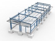 Jednopodlažní objekt s pultovou střechou jehož nosná ocelová konstrukce je navržena jako soustava dvojkloubových rámů. Střešní a stěnový plášť je z PUR panelů, přičemž stěnové panely jsou uloženy horizontálně přímo na sloupy rámů a střešní panely na tenkostěnné vaznice. Prosvětlení interiéru objektu je zajištěno střešním světlíkem a okny ve stěnách. Vstup do objektu je s ohledem na provozní požadavky realizován jak sekčními vraty, tak automatickými prosklenými dveřmi. Komunikační plochy kolem objektu jsou zastřešeny markýzami na stěnách.